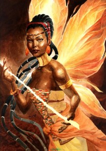 To the south of Wolof and Fulani homelands are the Dahomey people of Benin, who know their Good Neighbors as the Aziza. The Aziza are friendly and extremely tiny and hairy forest dwelling people who are said to live inside of anthills and silk trees. Some of them are known to have butterfly wings that glow like fireflies. With a history of friendly disposition towards villagers and their extensive skills in herbal medicine and magic, they are famously known for sharing their knowledge of fire and survival to humankind. Like many other benevolent hidden peoples, it is said they will often help wanderers or travelers who are lost or in need of assistance.