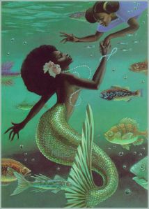 Mermaids are understood as real beings with advanced knowledge, psychic abilities, and supernatural powers that can curse as quickly as they can heal. Also known for their music, some tell of sailors and fishermen working at sea, or people going to the river to wash their clothes and suddenly being hypnotized by a beautiful song and voice that directs them to dive into the water and swim further into the deep until they can be taken under. For that reason, those working at sea may be told to wear something over their ears in certain areas where mermaids have been spotted. Those who succumb to their melodies and make it back to land are sometimes never able to enjoy music again. While there are many well-known mermaids throughout the world, below we’ll learn about a few central figures in the Caribbean and West Africa.