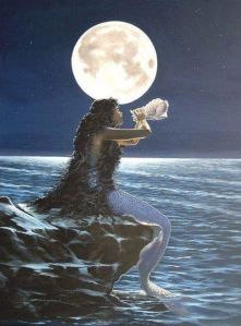 “…Is it any wonder, then, that her children frequently have great skill as diviners? That mirror in her hands, which is the child of the watery portal our distant ancestors first sought out, reveals to us who and what we are, and in so doing, who and what we can be.”